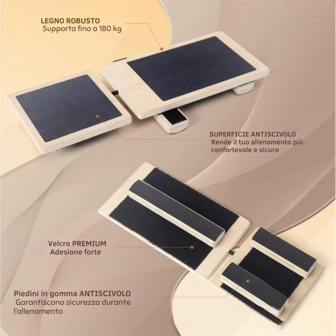 A differenza delle tradizionali tavole da equilibrio a due piedi, l’altezza ridotta e il design a una sola gamba dell’Equilibro obbligano ad attivare i muscoli intrinseci del piede e della caviglia.